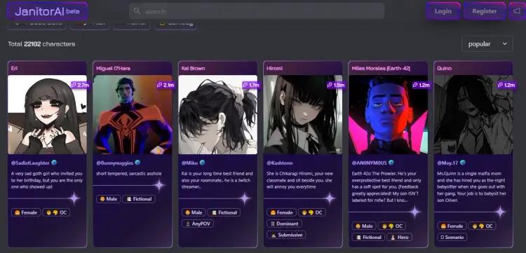 2. Janitor AI: AI Sex Chat App With Pre-modeled Characters