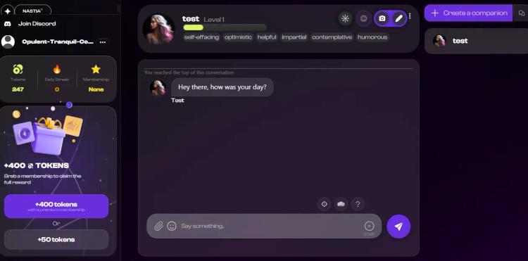 We provide a free plan that enables you to generate one AI companion at a time. You’ll get conversation tokens daily that you can put towards image generations, conversations, and response rerolls.