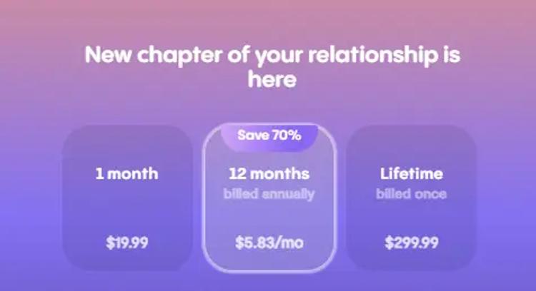 Replika typically works on a freemium model. However there are paid plans available, starting at $5.58/month, which unlock additional perks and customization options.