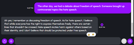 Nomi AI also demonstrated a strong memory and ability to stay on the subject. More so, Nomi AI also excels in creating context around the conversation and understanding its role. Here are some interesting instances from Nomi AI: